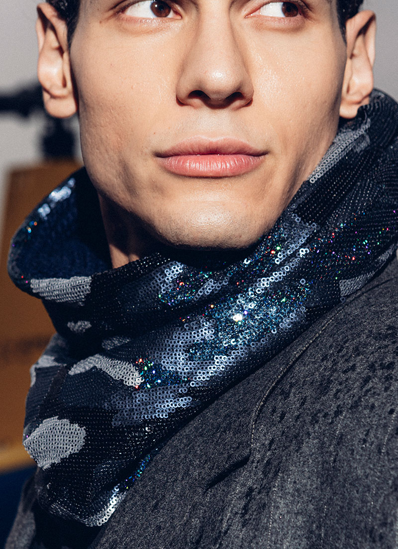 Dazzle with the striking Blue Mirage Sequin Snood, an accessory that effortlessly combines bold style with versatility. One side features an eye-catching pattern of blue and silver sequins, blending zebra and camouflage motifs for a dynamic, shimmering effect. The other side offers a soft, knitted fabric for ultimate warmth and comfort, making it perfect for cooler weather.