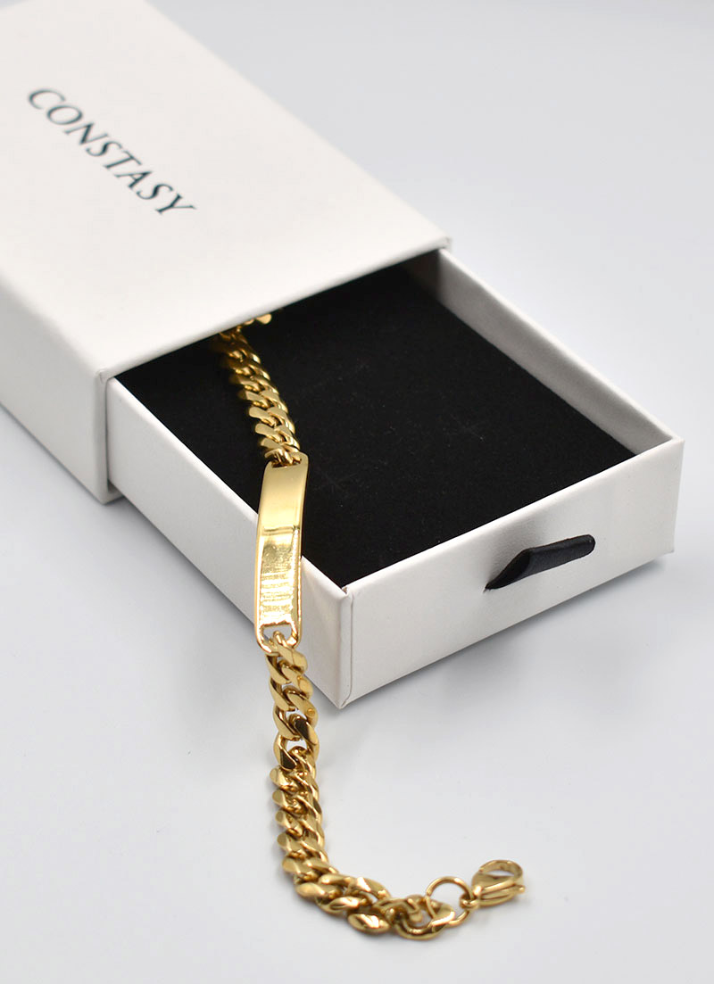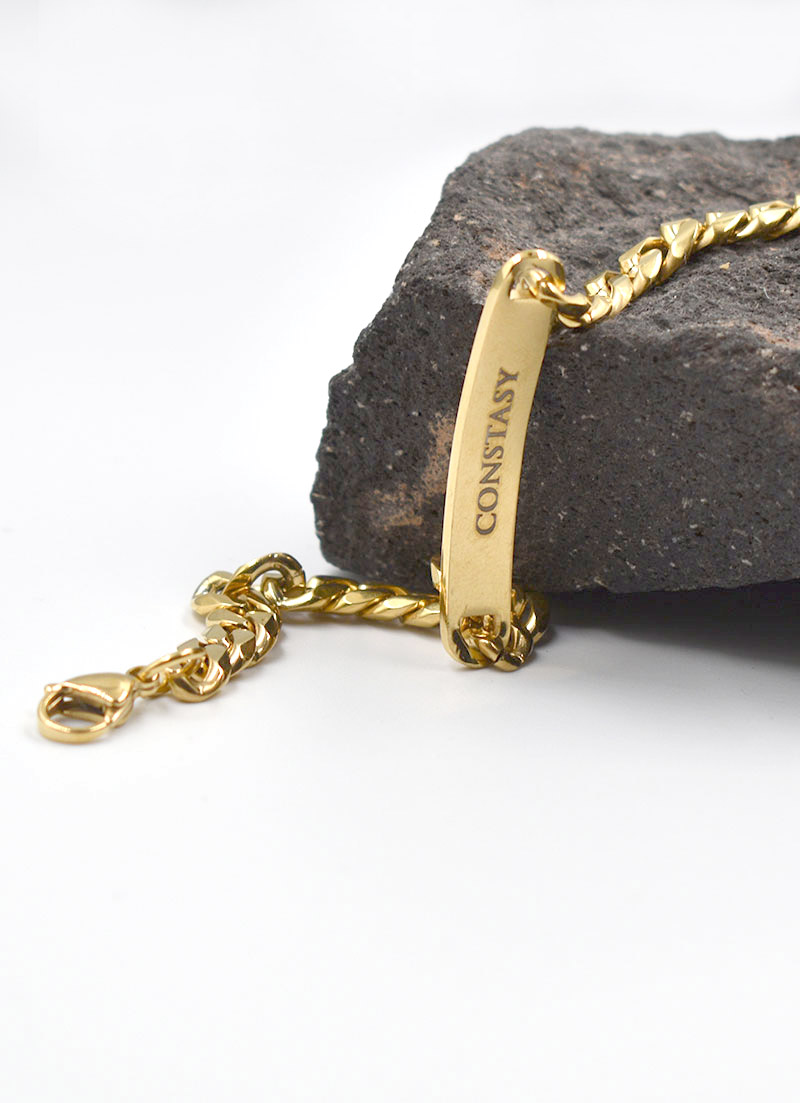 The Constasy bracelet id is definitely a statement piece with a 5mm chain, featuring engraved logo, chain-link detailing and clasp fastening.