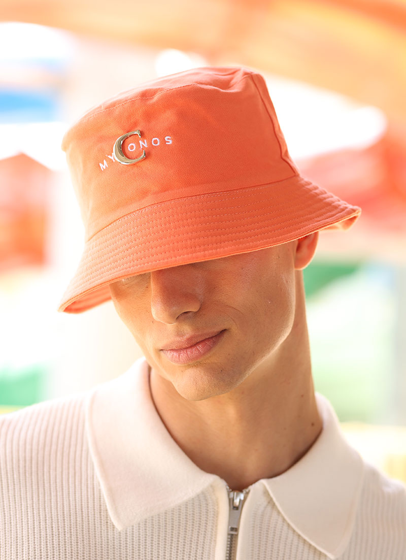 The Canvas Myconos Bucket Hat features a beautifully knitted logo that reads “MYCONOS,” incorporating the signature “C” from CONSTASY, replacing the “K” in the traditional spelling of Mykonos island’s name. This creative reimagining adds a modern and branded touch to the hat, making it a standout piece.
