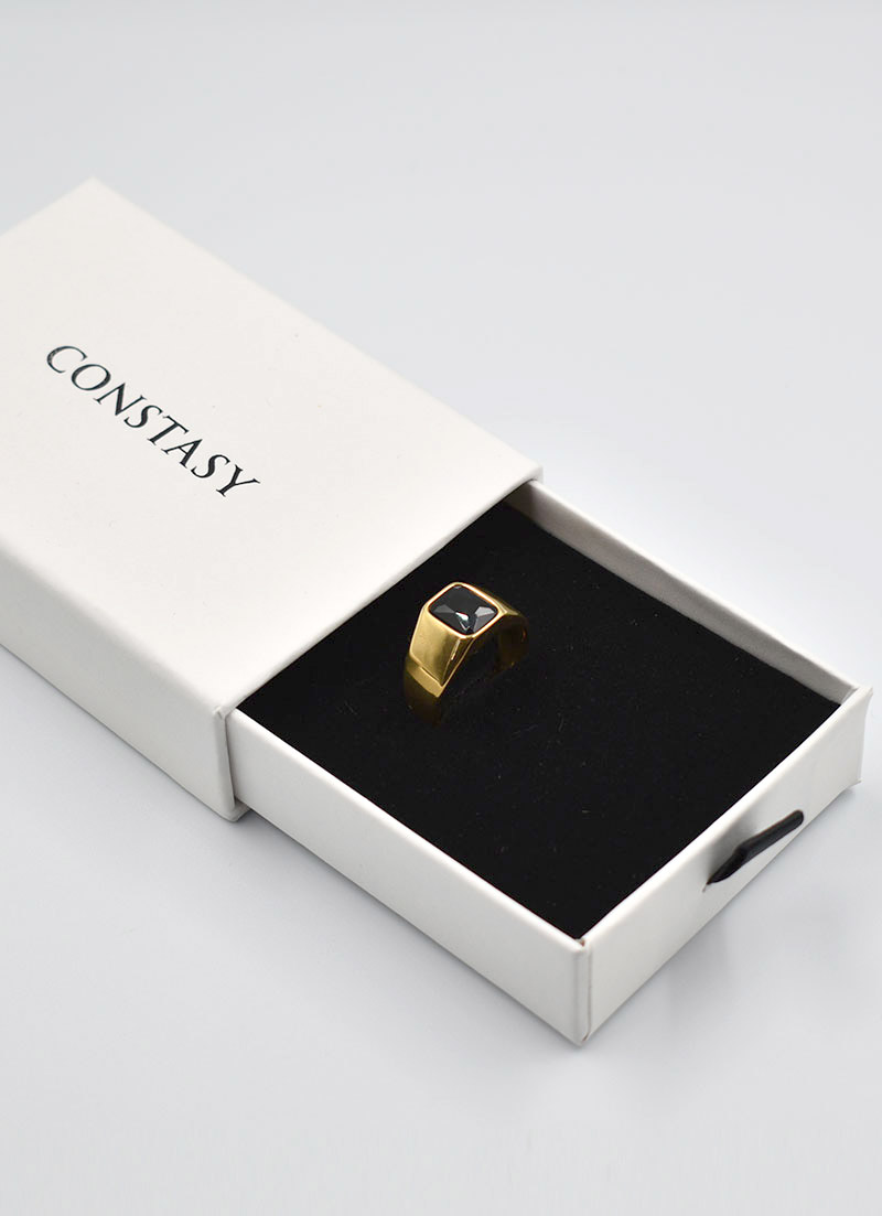 Add a touch of class to your hand with this CONSTASY elegant gold ring with black stone.
