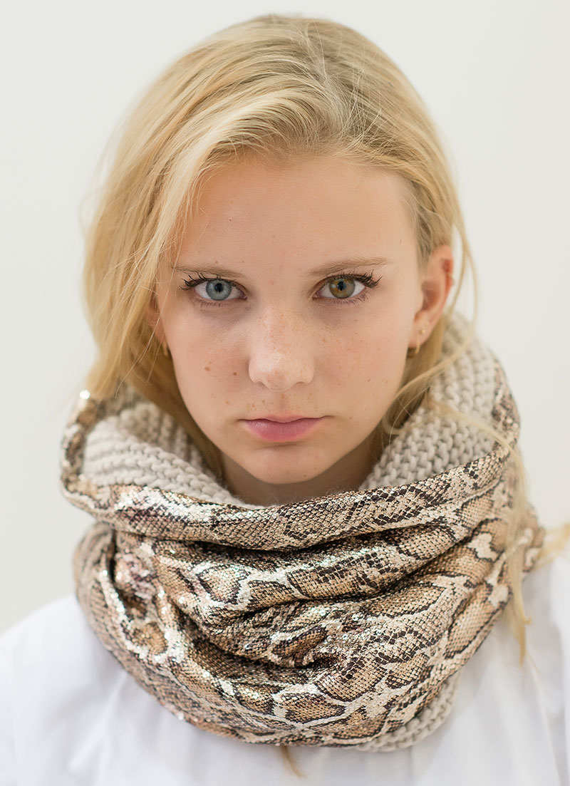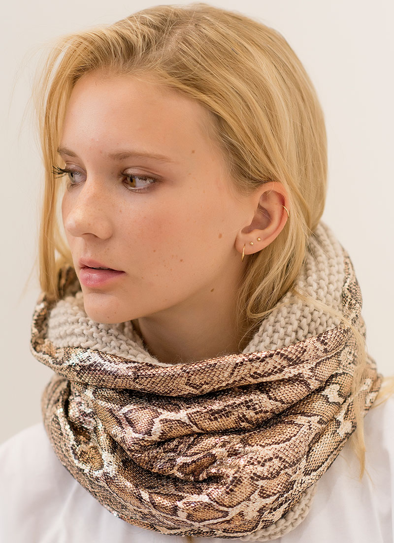 Inspired by the intricate beauty of snake skin and the allure of sequins, this snood is a must-have addition to your cold-weather collection.