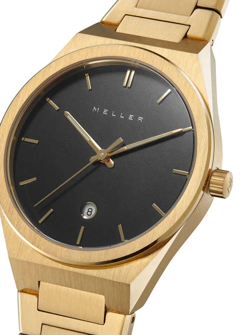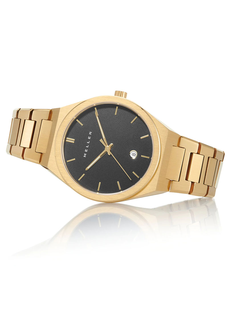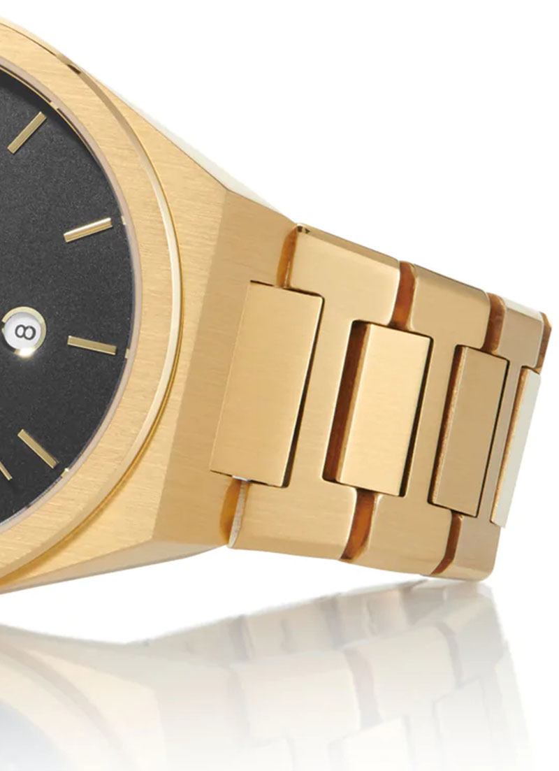 This gold watch with black dial is the most stylish watch of the season! Japanese Quartz Movement, Sapphire Coated Crystal and Water Resistant 10ATM. 2 Years Warranty.
