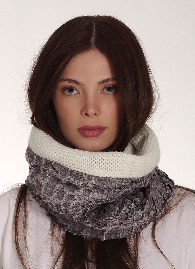 Elevate your winter style with our Croco Embossed Eco Fur Elegance Snood. This uniquely crafted double-sided snood features a luxurious croco-embossed eco fur exterior, which not only adds a touch of sophistication but also showcases the distinctive croco pattern. The interior is lined with cozy off-white wool for ultimate comfort. It’s a must-have addition to your cold-weather collection.