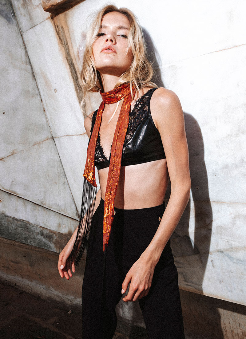The delicate twill fabric provides the canvas for these exquisite sequins to shine upon, while the black fringes add an enchanting finish that complements the overall design. Whether you choose to drape it as a scarf, cinch it as a belt, or knot it as a tie, the “Royal Bronze Sequin Whirlwind” is your path to an elevated and distinguished style.