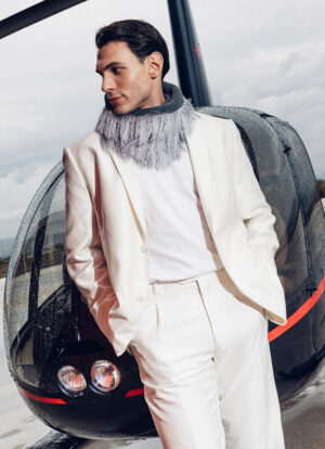 The cool gray shade offers a refreshing alternative to neutrals, effortlessly elevating beachwear, resort looks, or city strolls. Lightweight, breathable, and beautifully detailed, it’s the perfect piece to wear from sunrise to golden hour.