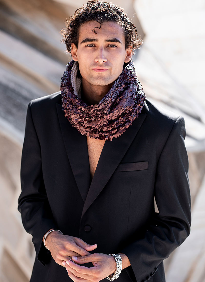 Elevate your winter style with our Wine Metallic Snood. This uniquely crafted double-sided snood features wine-colored metal details on one side, exuding a touch of sophistication and luxury. On the reverse side, you’ll find cozy nude wool for ultimate comfort. It’s a must-have addition to your cold-weather collection.